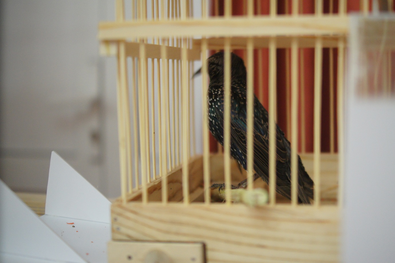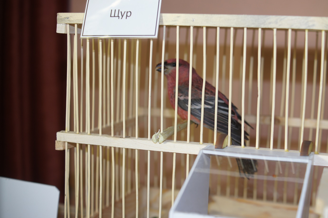Она оказалась самой представительной по количеству выставленных видов певчих птиц. Боюсь ошибиться, но думаю, больше пятидесяти видов певчих и декоративных птиц было, из них значительная часть - птицы отечественной фауны. Вячеслав Хомяков, как и обещал, приготовил экспозиционные клетки. Делались они по часто применяемой технологии с использованием деревянных прутиков. Глаз хорошо воспринимает птицу в такой клетке, а вот при съемке птица чуть теряется за ними. По этой причине много снимать не стал.