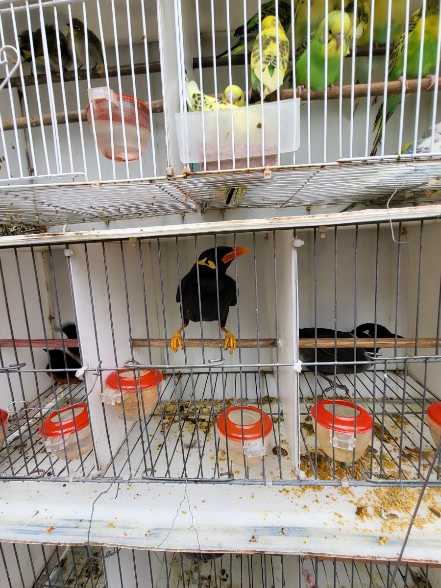 В Азии птиц , как правило , продают или в одиночных клетках или в боксах, забитыми птицами одного вида.
