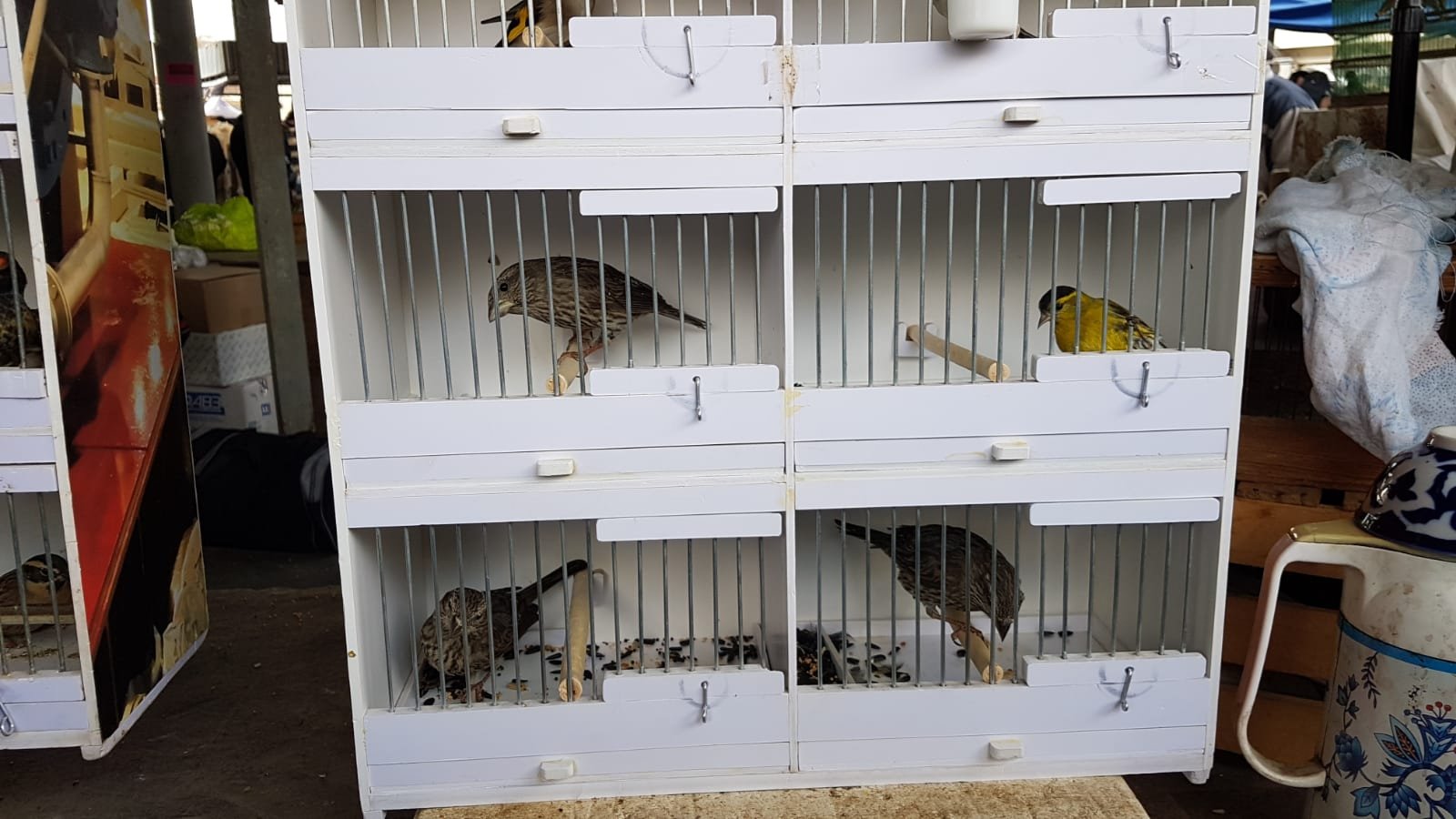 Некоторые птицы завешены аккуратными белыми шторками. Даже не покупателям люди открывали их, с удовольствием демонстрируя птиц, помогая сделать хороший кадр или видеосьемку. И это было очень приятно!