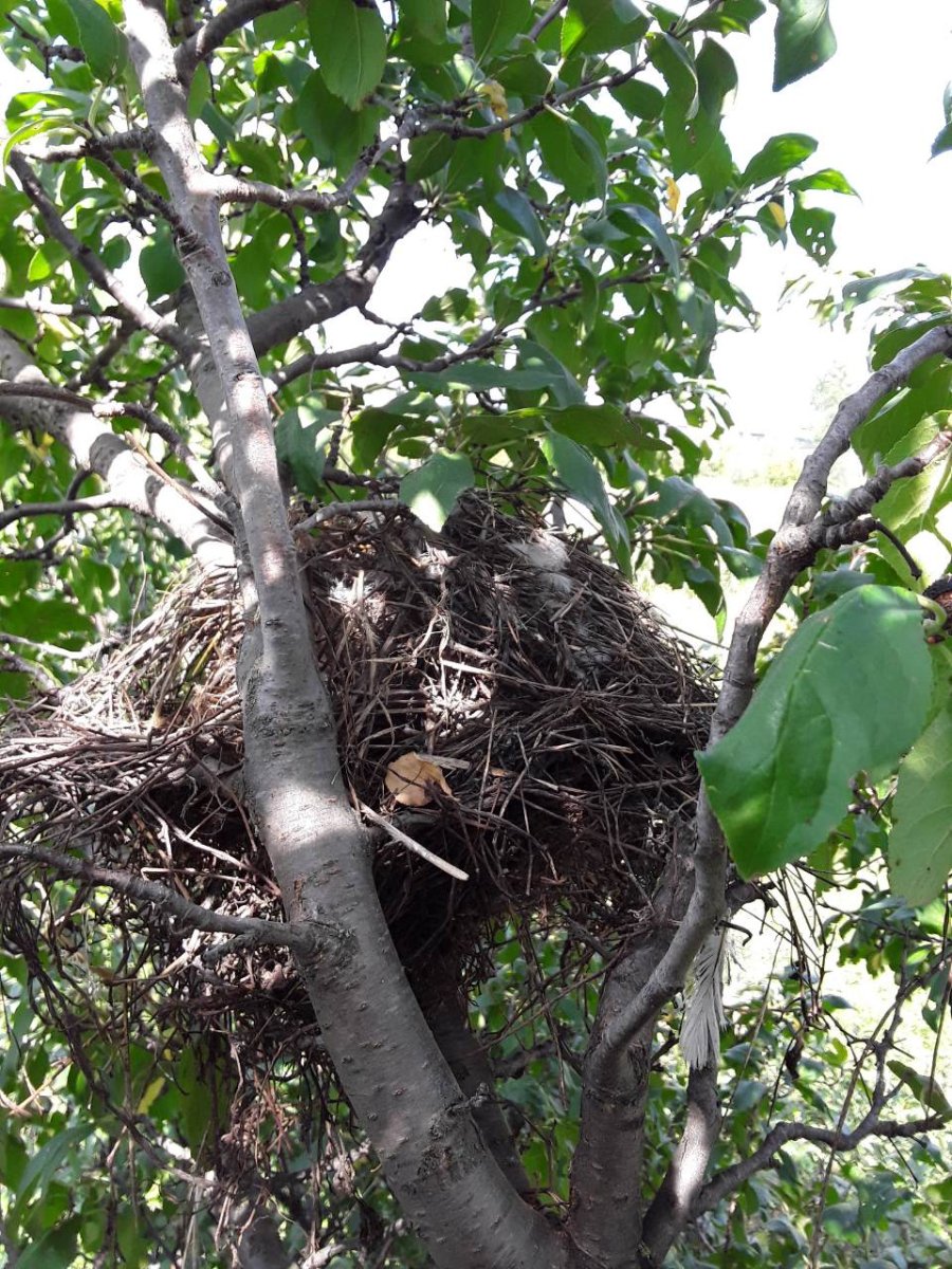 Если б не такой большой размер гнезда, сказал бы черный дрозд. Они как раз отсидели третью кладку.