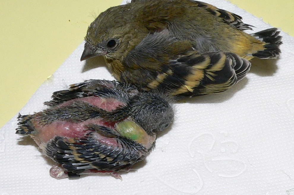 При таком разном развитии у меня думаю птенчик самец выжил,из гнезда он вылетел первый сразу познав агрессию папаши. Тот стал спариваться с самкой,и мама пошла на вторую кладку при этом выкармливая второго птенца. Оказалась самка - вот и она вылетела, папаша сына гонял по всем углам клетки, к дочери он проявил такое внимание и уход кормя самым вкусным в течении двух недель. Она догнала по развитию брата, а он так и летал к мамке выпрашивая добавки , хотя питался самостоятельно. На второй кладке папаша не исправился - понял я , что потребности свои он удовлетворил , детей заделал - а там мать разбирайся.