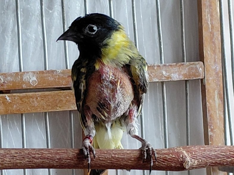 Самец давно был отсажен отдельно от самок и линяющей молодежи. Линька была на стадии завершения, и вот... придя домой, обнаружил общипанную птицу...