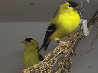 Золотые чижи у меня второй год, за это время самцы еще ни разу полностью не теряли брачный наряд, единственное, что я заменил что черный цвет меняется на бурый. Практически, в январе они снова имели брачный наряд (за исключением, отдельных участков оперения. сейчас они вылиняли на 90% (один самец имеет еще черный клюв, а у другого чернота осталась только на кончике). с марта их пришлось рассадить тк они стали проявлять агрессию друг к другу. на данный момент сидят парами с самками не конфликтуют, один из самцов уже поет,однако, на самку внимания не обращает, хотя самка готова к гнездованию и периодически выпрашивает корм у самца.