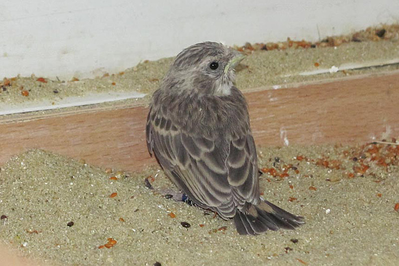В зоомагазины эти птицы нередко поступают в довольно плохом состоянии. Для поправки им нужно давать мелких живых насекомых и мелкие мягкие семена. Держать в тепле. Птицы, благополучно преодолевшие критический период приспособления к новым для них условиям, живут в неволе довольно долго: до пяти, а нередко и до десяти лет. Они хорошо привыкают к человеку и зачастую гнездятся не только в вольере, но и в клетке. С другими птицами эти вьюрки уживаются плохо. В период размножения смело отгоняют от гнезда даже таких птиц, которые значительно превосходят их величиной. Особенно агрессивны они в это время по отношению к своим сородичам - ко всем другим видам канареечных вьюрков, с которыми дерутся даже через решетку клетки. Чтобы паре серых канареечных вьюрков создать благоприятные условия для размножения, ее надо отсадить в отдельную клетку и чем-нибудь заслонить от соседей.
