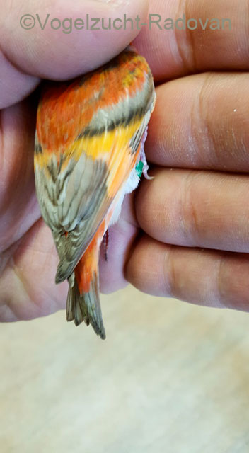 Добрый вечер! Хочу показать Вам молодого самца выведенного моим товарищем Алексеем, большим любителем американских чижей. Вчера мы произвели с ним обмен птицами и он даже не обратил внимание что у данного самца окантовка перьев белая. птица смотрится очень интересно