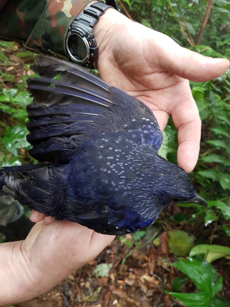 Еще одна встреча с синей птичкой. Мы встретили ее высоко в горах, в 200-300 м от речек,что в принципе было очень неожиданно. Высота - 1100 м. Сплошные джунгли. Размер можно сравнить с масштабом руки. Птица размером может быть чуть больше черного дрозда. Хвостик короче,чем у желтоклювой формы. Песенка - очень нежная, приятная,разнообразная. Но исполняет ее коротко, видимо потому как зима...