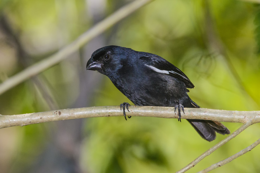 Хотя эту птицу и называют снегирем, она не является родичем всем известного снегиря. По ряду своих морфологических признаков этот вид, по-видимому, ближе всего к подсемейству овсянок. Черный снегирь встречается только на Кубе. Вся она блестяще-черная с ярко-белой продольной полосой по краям крыльев. Массивный клюв этой птицы напоминает клюв снегиря, отсюда и произошло ее название. Самка имеет менее эффектную, темно-серую (шиферную) окраску со слабым блеском. Длина птицы 13,5 сантиметра.