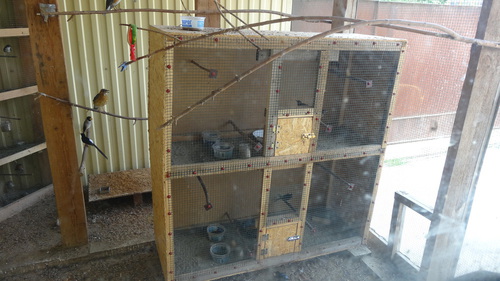 Присмотрелся-а это громко поет моя "одноглазая" самка,а отвечает ей в соседнем садке тоже самка.Самцы в обоих случаях молчали.Раньше я от самок песен не слышал(хотя многие самки у птиц пропевают),и уж тем более-совместного пения самок.