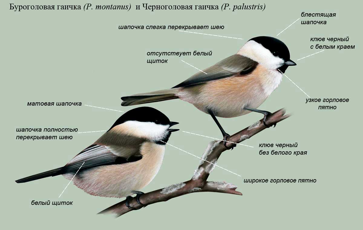 Визуальные различия между буроголовой и черноголовой гаичками