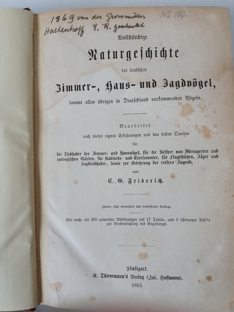 • Домбровский Ф.В. «Питомник». Разведение, лечение и уход за комнатными певчими птицами, как то: канарейками, соловьями, жаворонками, попугаями и др. Ловля птиц, приручение и обучение пению. Спб., 1893. DjVu
