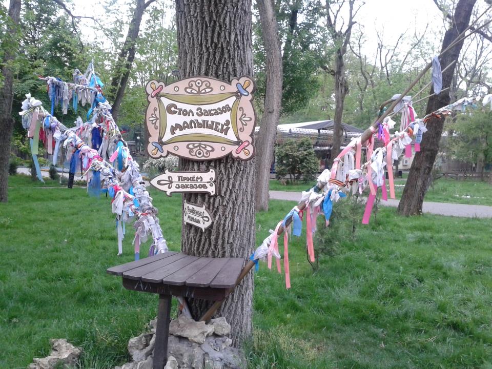 Приветствую Всех на сайте Гулярис! Такой "столик" заявок устроили в местной Чистяковской роще, куда молодожёны (из Екатерининского зала бракосочетаний), что неподалёку, по традиции приходят отметиться у почётного столпа, повязав ленточку. На снимках нижняя и верхняя часть одного сооружения. :)