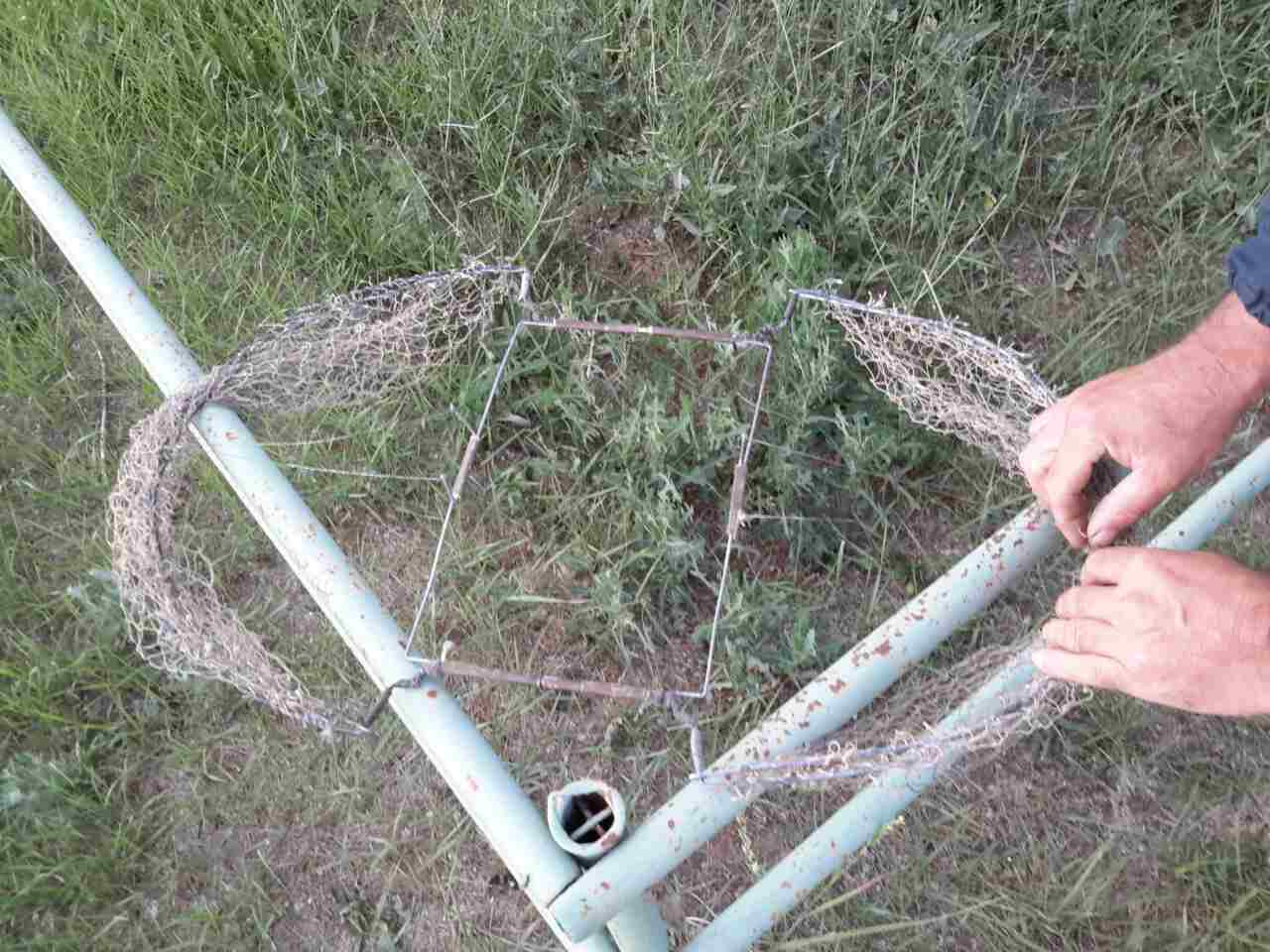 Да...прошу не обращать внимание на зеленые трубы. Это просто угол забора. Снасть специально поднята над землей,чтобы была видна ее прозрачная конструкция. На земле она практически не видима.