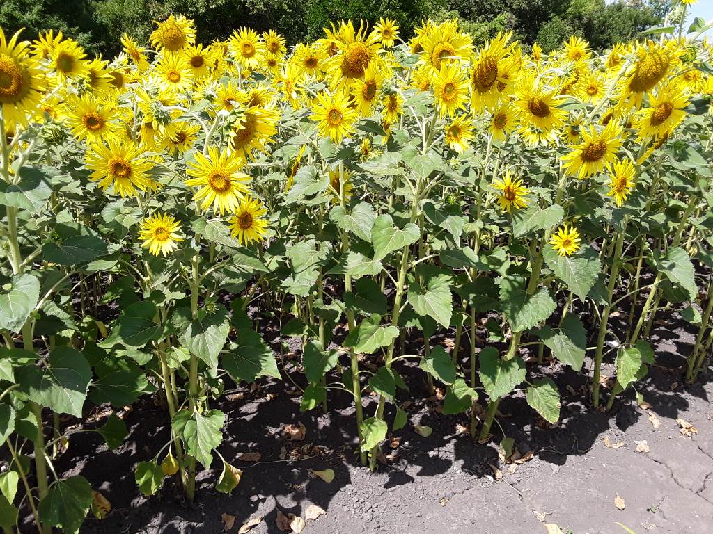 Зацвел подсолнечник "Кляйне семки". Всхожесть семян отличная. Вопреки ожиданиям и несмотря на густоту посадки, на каждом растении по несколько шапок,