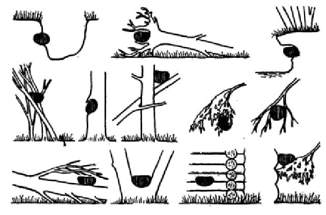 Схемы расположения гнезд дрозда-белобровика