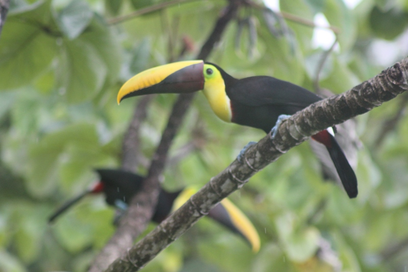Да, сильно в джунгли я не захожу, как то самому не очень комфортно это делать, если верить интернету, тут проживает десятка самых ядовитых змей на планете. Нужно просто учитывать, по сути это страна одна большая деревня и очень многие предпочитают строить свои дома у леса, когда участок упирается в джунгли или если это большой участок, часть его и есть джунгли со всей фауной и флорой. Птичья жизнь кипит везде, сейчас живу на окраине небольшого городка и гуляя часто вижу туканов, неторопливо перелетающих с одного на другое кормовое дерево,три вида танагр постоянно вижу возле дома, два из них регулярно посещают мою кормушку на веранде, вокруг полно мелких зерноядных размером с японскую аммадину, местные крапивники утром будят лучше будильника.