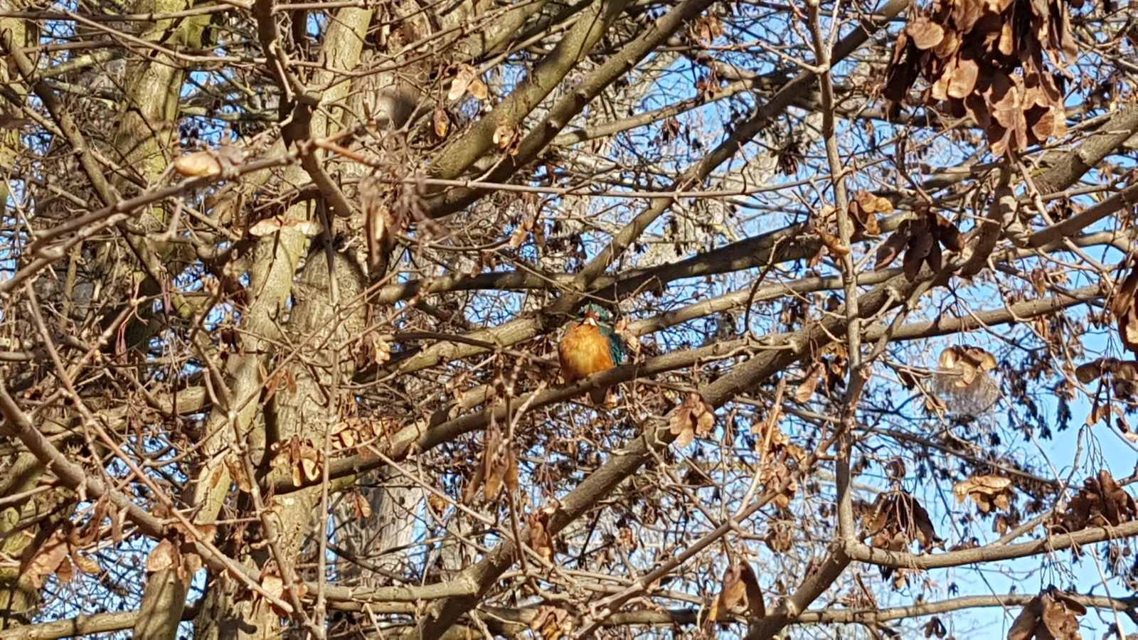 А на пересечении канала и посадки встретил своего старого знакомого - зимородка. Он грелся на солнышке, сидя на ветке и подпустил к себе практически вплотную. Хорошо, что уже на следующей неделе обещают серьезный двузначный плюс. Надеюсь он его дождется.