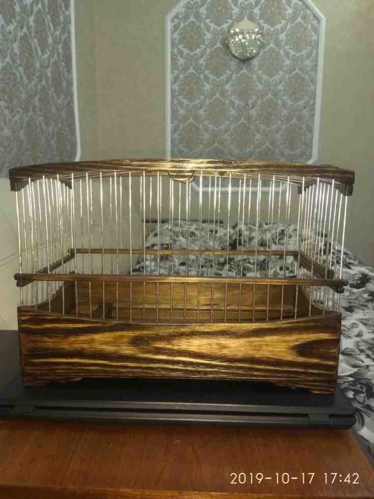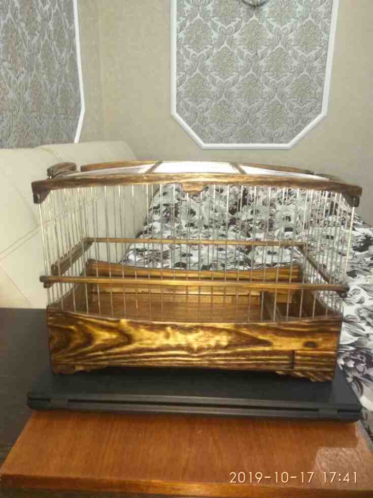 Добрый вечер.Сделал клетку стандартную классика для Челябинска.Размер Д-500мм Ш-240мм и В- с ножками 350мм .Высота нижнего борта 90мм .Дерево дуб,спицы пищевая дюраль,фанера 4мм влагостойкая.Клетка с спицами пищевая дюраль легче на половину чем если спицы из нержавейки.Диаметр спиц 1,6мм расстояние между спиц 15мм по центрам.Вся клетка пропитана Пинотексом и покрыта в два слоя импортным яхтным лаком с промежуточным шкурением наждачкой между слоями.