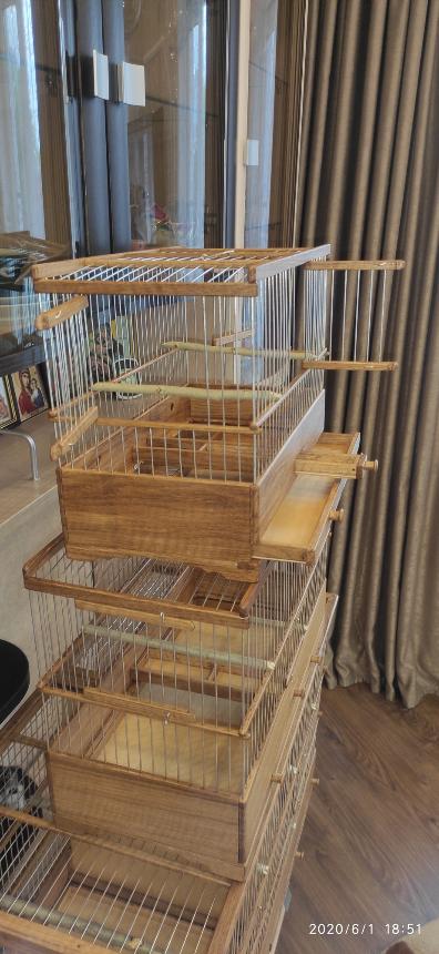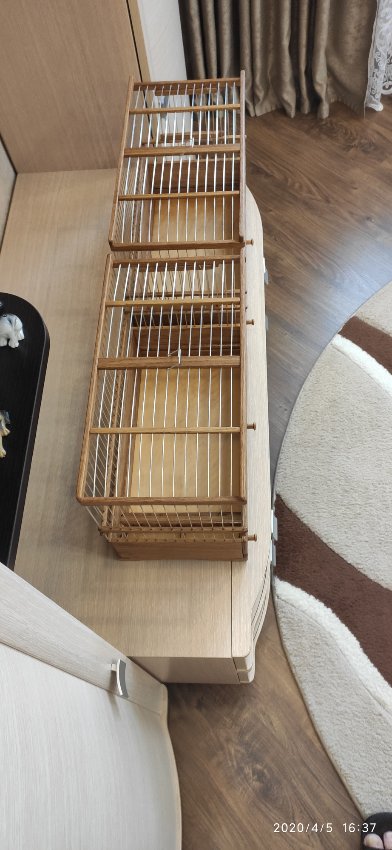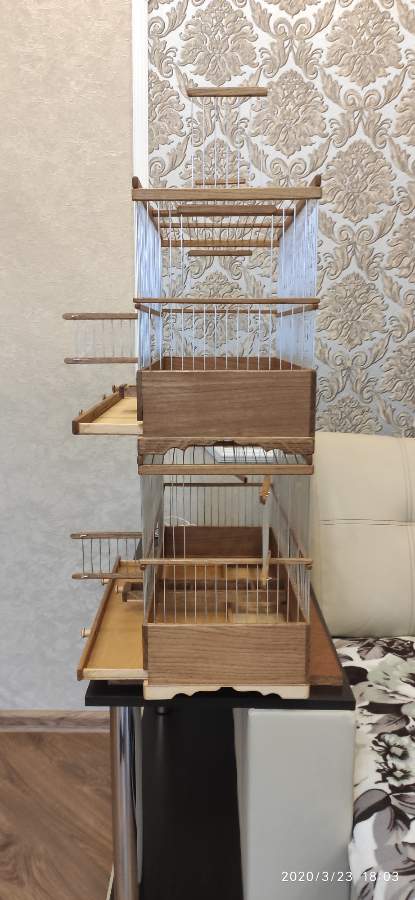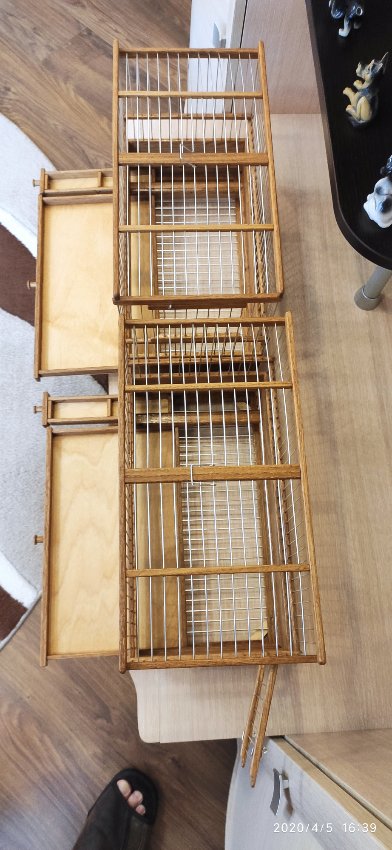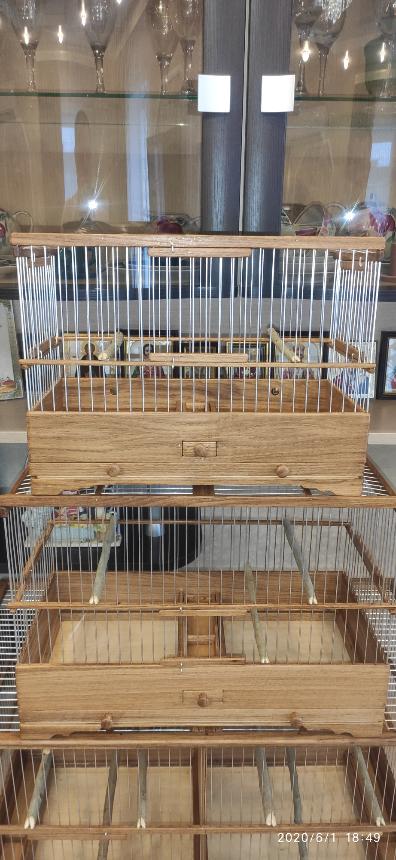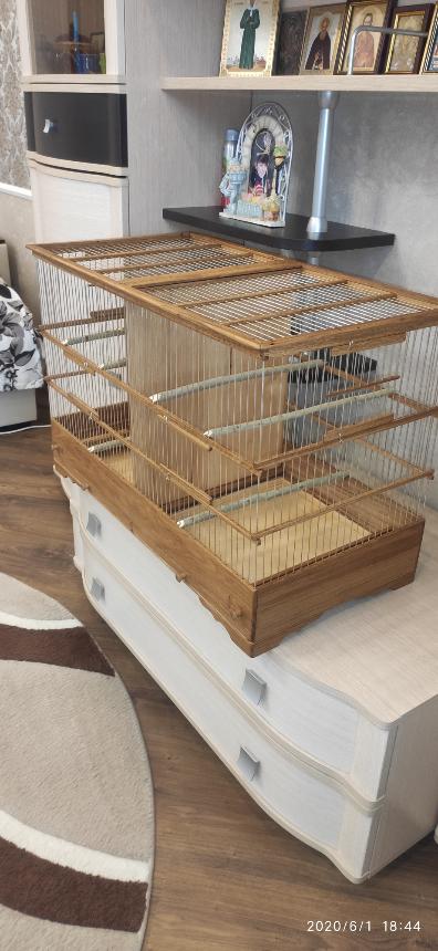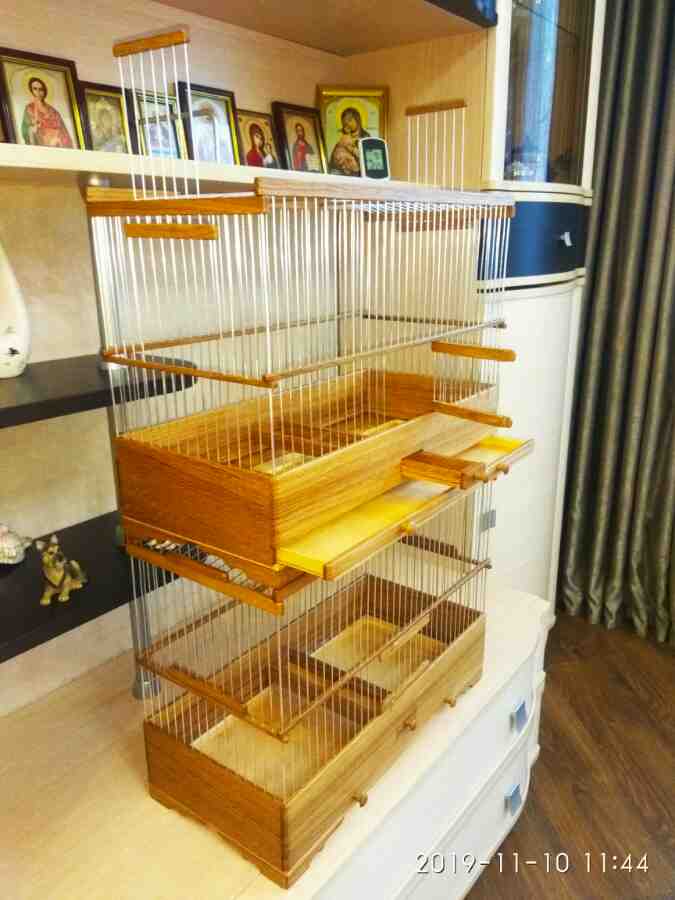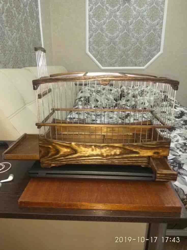 Добрый вечер всем кому интересны клетки моего изготовления.Вот представляю вам на обзор ещё пару клеток сделанных мною для города Абакан и Муром.Клетки классические и стандартного размера.500×240×350мм .Дерево дуб,спицы пищевая дюраль диаметр 1,6мм,фанера влагостойкая 4мм.Клетки пропитаны Пинотексом и как всегда покрыты в два слоя импортным яхтным лаком с промежуточным шкурением между слоями лака.На одной клетки ножки и ручки липа и распошные боковые дверцы.На другой ножки и ручки под цвет клетки тоже дубовые и боковые дверцы подъёмные.Кормушки выдвижные по центру клетки.При таком расположении кормушки не съедается полезное пространство в клетки и расстояние между жердочками увеличивается по сравнению если бы кормушка была расположена с лева или с права.Да и птица не будет гадить в кормушку.