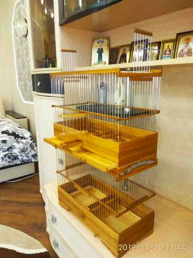 Добрый вечер народ!Давненько я не выкладывал фотки своих работ по клеткам!И вот закончил наконец две в Московскую область большая с съёмной перегородкой и двумя кормушками размер 700×340×500мм.Дерево дуб,спицы пищевая дюраль.Остальное как всегда.Лак в два слоя.Вторая Клетка стандарт классика 500×240×360мм.Дерево дуб спицы также и все остальное тоже самое лак импортный яхтный.Третья клетка сделана в Питер.Клетка чисто для кенора полуторка.400×200×300мм.Дверцы три нижнее основное дно спицы не фанера Выдвижное влагостойкая фанера.Дерево дуб остальное тоже самое.Вот как то так получилось.Строго не судите