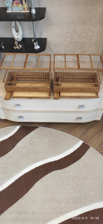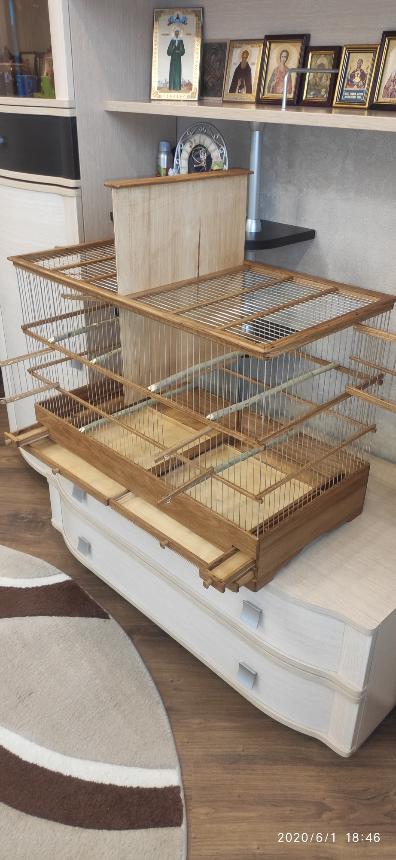 Добрый вечер всем!Вот и во время пандемии и самоизоляции без дела не сидим!Смастерил пару клеток в Ростовскую область Клетки размером 400×200×290 высота с ножками полностью всей клетки.Дверца одна распашная с правой стороны по заказу,дно и кормушка выдвигается вперёд расположены на одном уровне,в клетке фанерного основного дна нет стоят спицы по по просьбе заказчика.Материал как всегда дуб,спицы пищевая дюраль.Все желающие оставляйте отзывы и задавайте вопросы ,я всегда готов ответить.