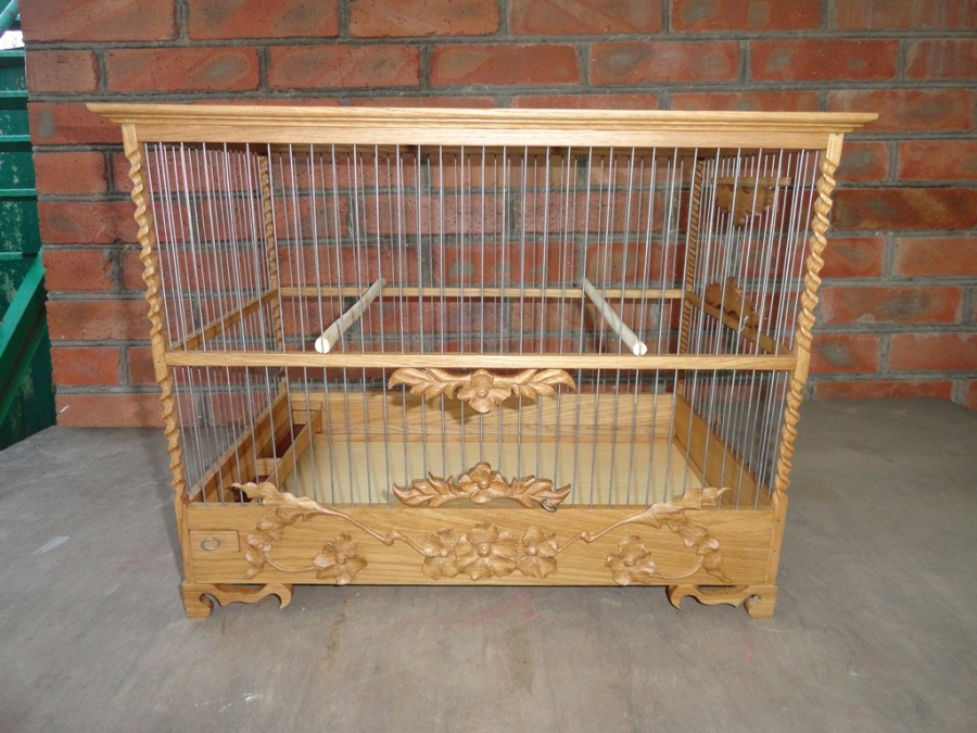Приветствую всех форумчан. Вот сделал зимними короткими денёчками. Клетка для щегла. Дуб, нержавейка, масло с воском.