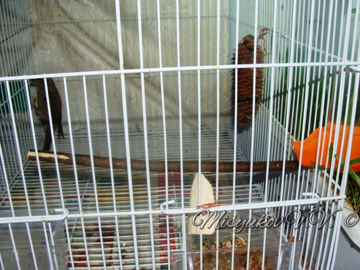 Однако обратил внимание, что на ночь они устраивались именно сидя на пучке метелок. Днем, активно перемещаясь по клетке, птицы прыгают на эти пучки, и получаются пружинящие жердочки. Так и оставил эти пучки в клетках.