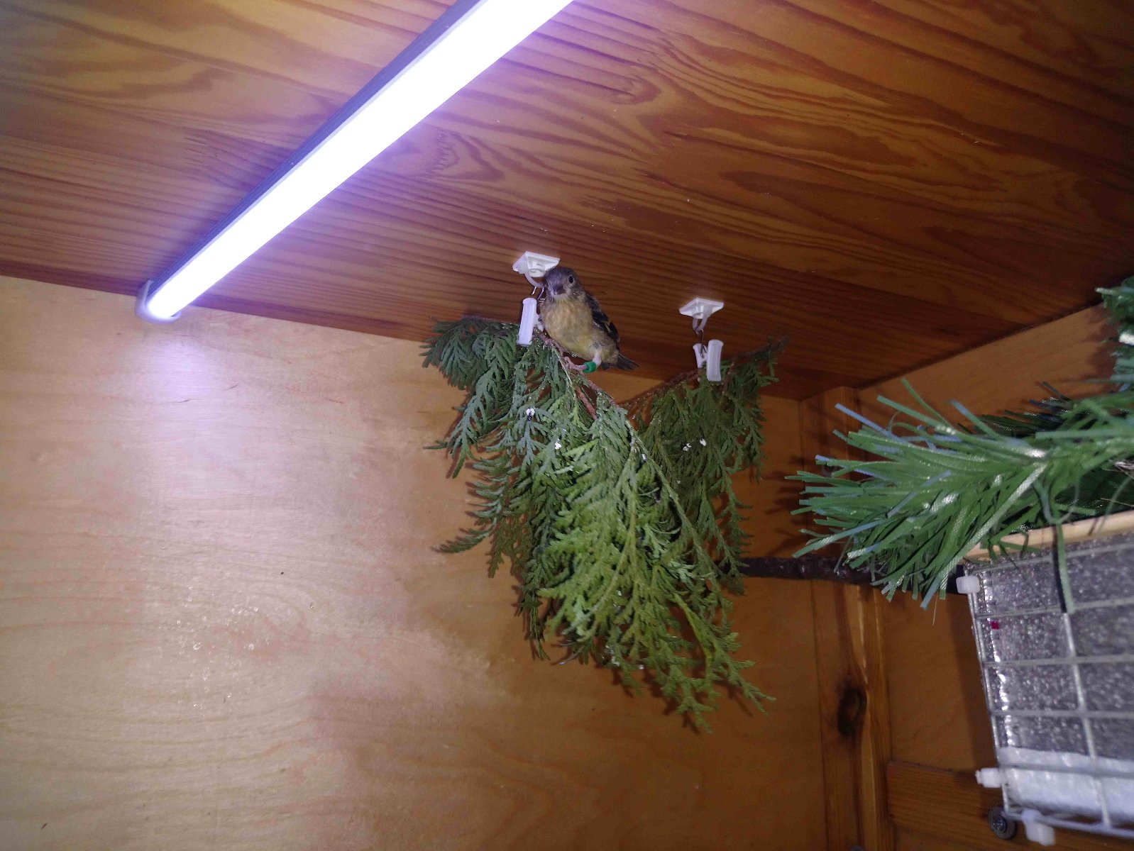 Вылетели 4 птенчика у другой пары огненных чижей. Еще в гнезде окольцевал птенчиков неразъемными колечками. Но для лучшей идентификации после вылета птенцов надел еще и цветные пластиковые колечки.