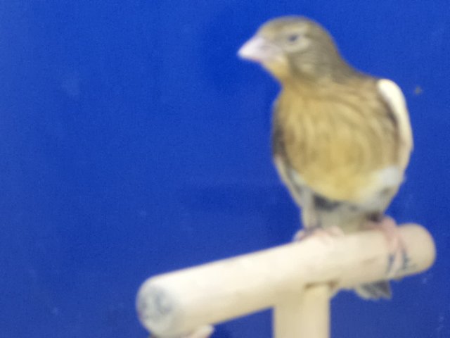 Этот птенец уже вылетел из гнезда, получился лимонно белый ,без пятен, вот генны красного чижа ослабивают на окраску птенцов второго поколения.