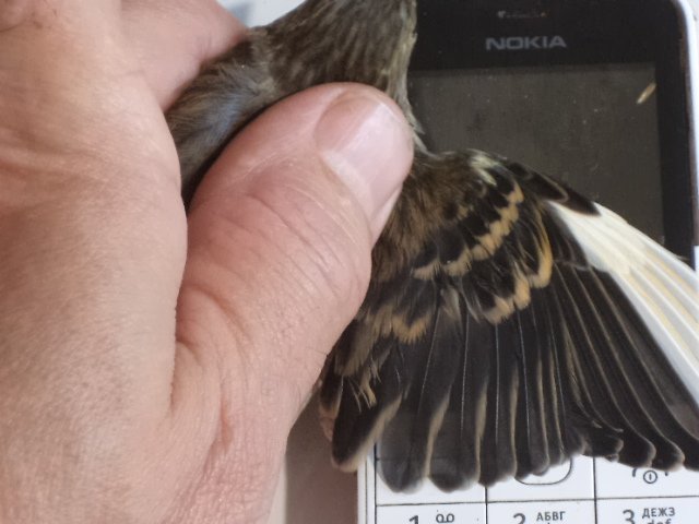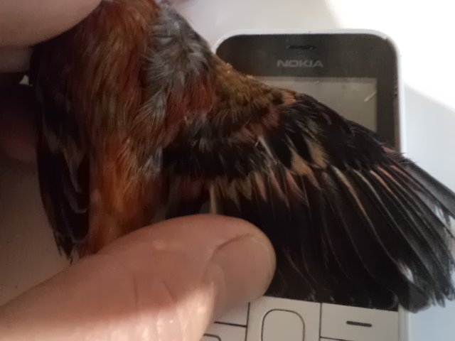 Вот сходил выгуливал собачку и зашел сделал фото крыльев двух с первого выводка и фото птенца 4-5 дней, который открывает рот, зрение уже не очень, так что резкость на слух по звуку мыльницы, а в кеноне тоже автофокус не работает.