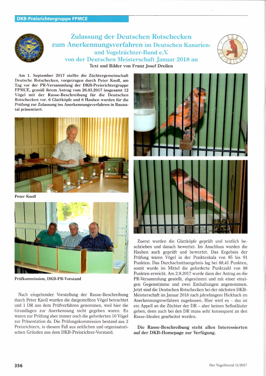 Скорее всего, или возможно, по-русски будет звучать как "немецкая красно-пестрая (пятнистая,пегая и т.д)"...порода еще не стандартизирована,направление этого разведения упорно поддерживается достаточно большой группой разводчиков (в настоящее время порядка 40 человек) из северной части Германии.Начало было положено еще в далёких 1960 х годах путем скрещивания красной канарейки с канарейкой глостер.