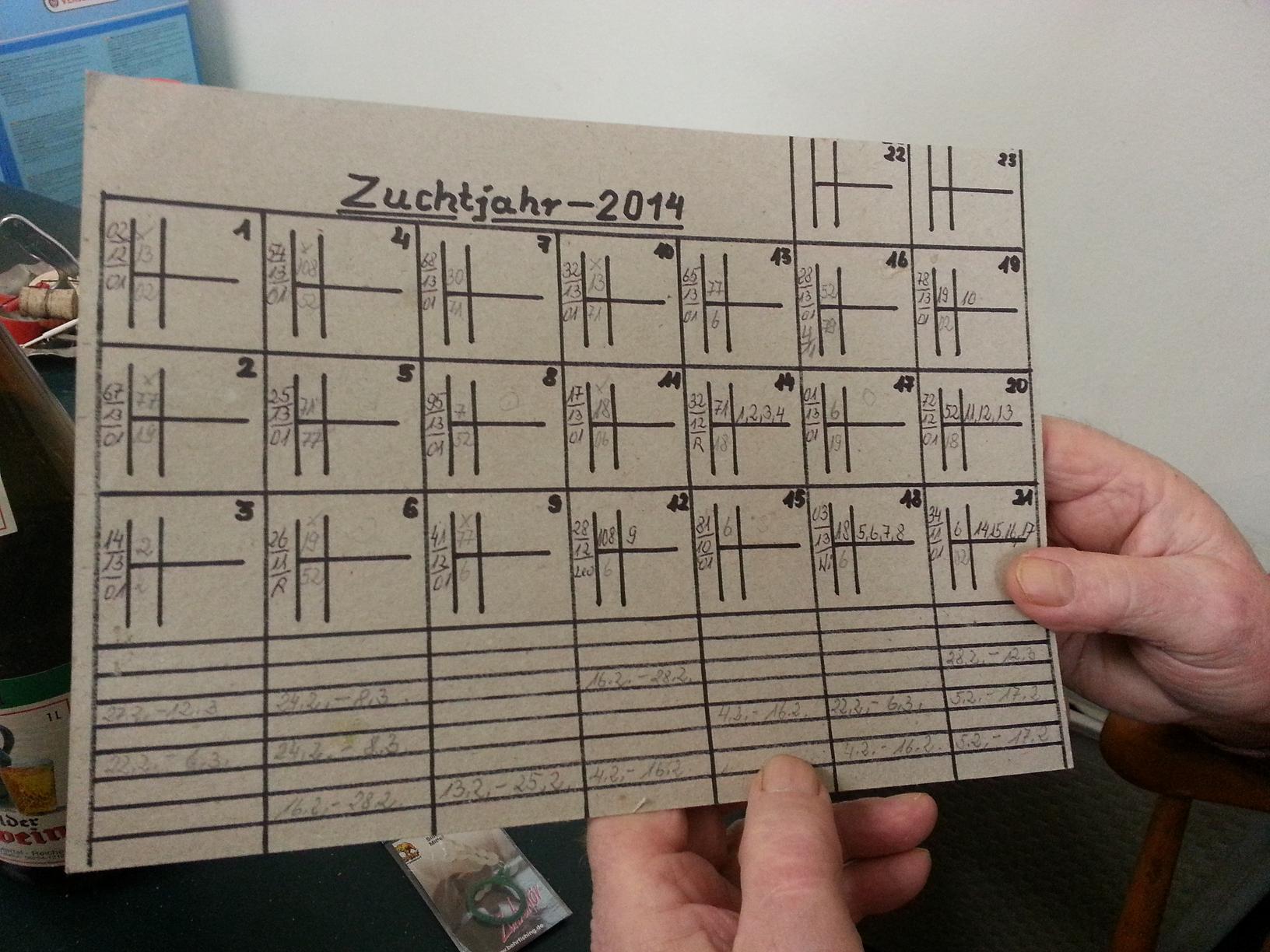 - и свою технологию учета разведения птиц, план паровок на каждый год : [hide][attachment=6]20140304_151428.jpg[/attachment][/hide]- и уже подросших этого года малышей : [hide][attachment=7]20140304_145339.jpg[/attachment][/hide]