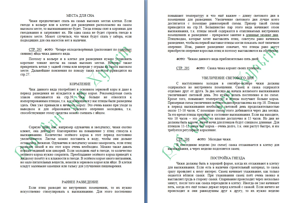 «Портреты» четырех самцов. Рассмотрим отличительную особенность этого вида – черный капюшон. С точки зрения селекции, форме и размерам капюшона уделяется недостаточное внимание со стороны заводчиков. Это предопределило нынешнюю ситуацию, когда этот элемент окраса оперения у разных самцов может сильно отличаться: от капюшона, переходящего в «галстук», до короткого или даже усеченного капюшона. На фото слева вверху представлен капюшон большой, но неровный. На фото слева внизу большой и правильный, с «галстуком». У особи справа вверху капюшон ровный, круглый, но несколько короткий. Справа внизу большой и правильный капюшон. Хотя стандартом это не закреплено, эстетически более приятен капюшон на правом нижнем фото, имеющий четкую границу на груди, без заусенцев. Приемлемым также является вариант справа вверху, правда, коротковатый. Нельзя назвать недопустимым вариант капюшона на фото слева внизу, но лучше не использовать таких птиц при разведении, слишком напоминают черногрудого чижа (Carduelis notata). При ведении селекции важно обращать внимание не только на капюшон самца. Самка, хотя и не имеет такого украшения на голове, наравне с самцом участвует в передаче этого признака потомству. На второй год жизни слабый контур капюшона позволяет иногда представить, какими будут размер и форма капюшона у потомства. Наконец, при подборе птиц для селекции обратите внимание на черный цвет капюшона. Он должен быть ярким и чистым, без вкраплений других цветов"