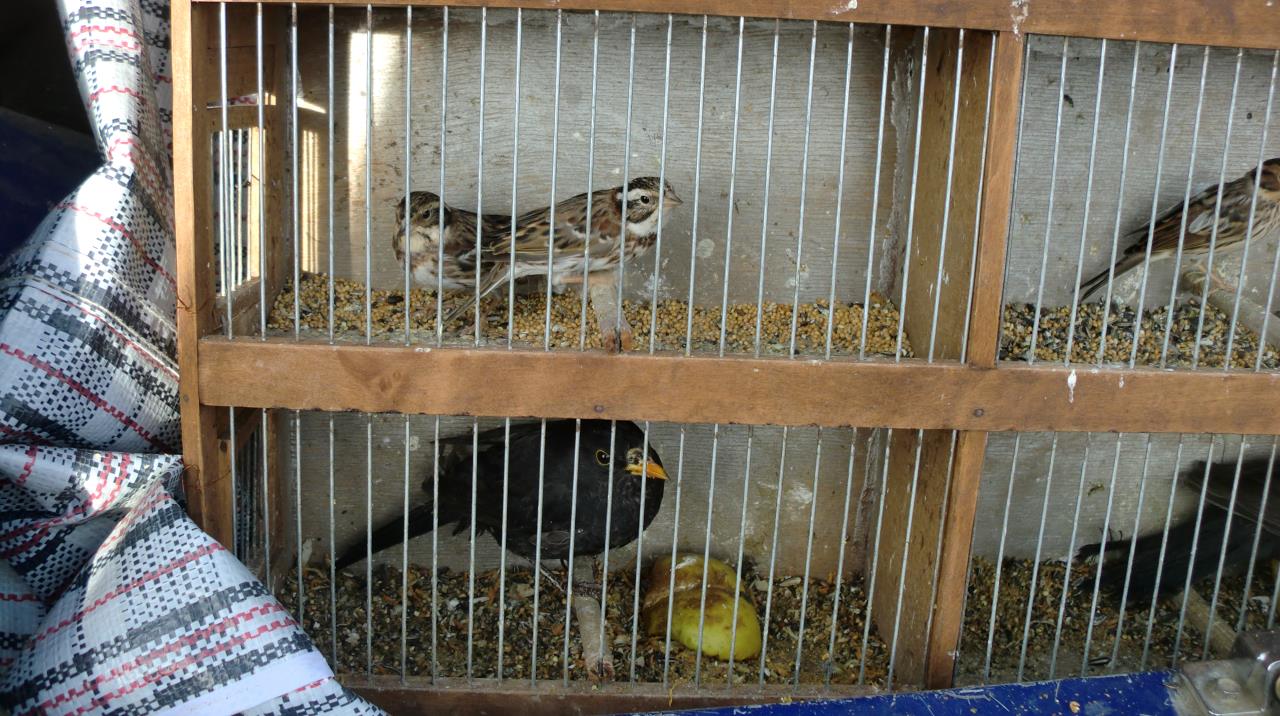 В воскресение состоялась выставка ярмарка певчей, декоративной, сельско-хозяйственной птицы и голубей. Из дикой птицы наблюдал чёрных, певчих дроздов и деряб. Зарянок, лесных завирушек, поползней, усатых синиц, длиннохвостых синиц, синиц лазоревок. Репелов, щеглов, чижей, зябликов, юрков, садовых и обыкновенных овсянок, овсянок крошек, овсянок ремезов, черноголовых овсянок, снегирей, щуров, степных жаворонков. Остальную птицу видно на снимках. Также было множество амадин, канареек и попугаев, голубей, уток мандаринок и много чего не упомянул. Больше всего меня заинтересовали дрозды дерябы, коих по словам Александра на снимке в горах великое множество. В результате приобрёл одну птицу, стоимостью 800 р., другого дрозда-дерябу взял мой приятель. За качество снимков прошу прощения.