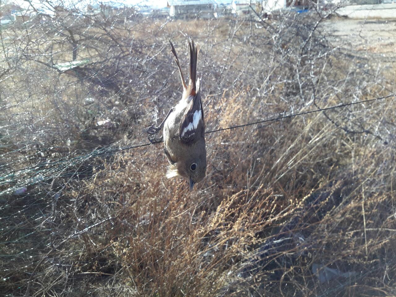 Однако даже при таком количестве охота не была простой. Лучки мы выставляли на земле, на камнях, на кустах, где непосредственно держались птицы. Но далеко не все особи реагировали на мучника, большинство их просто игнорировало. Паутину, даже те , которые стояли в комплексе, они прекрасно видели и мастерски их обходили. Так что приходилось неоднократно перестанавливаться и искать места их любимых переходов. В конце концов нам все-таки удалось взять несколько экземпляров.
