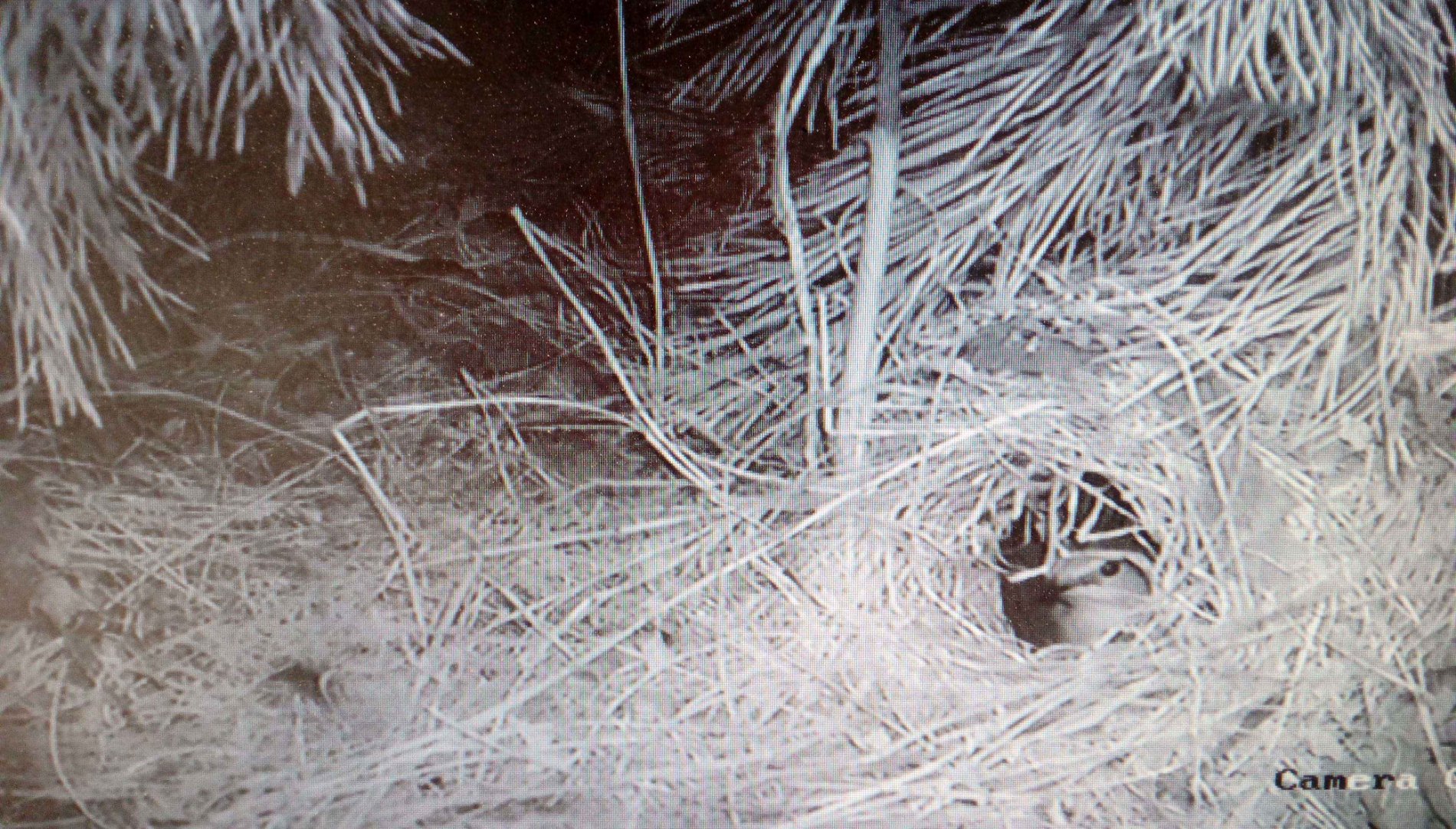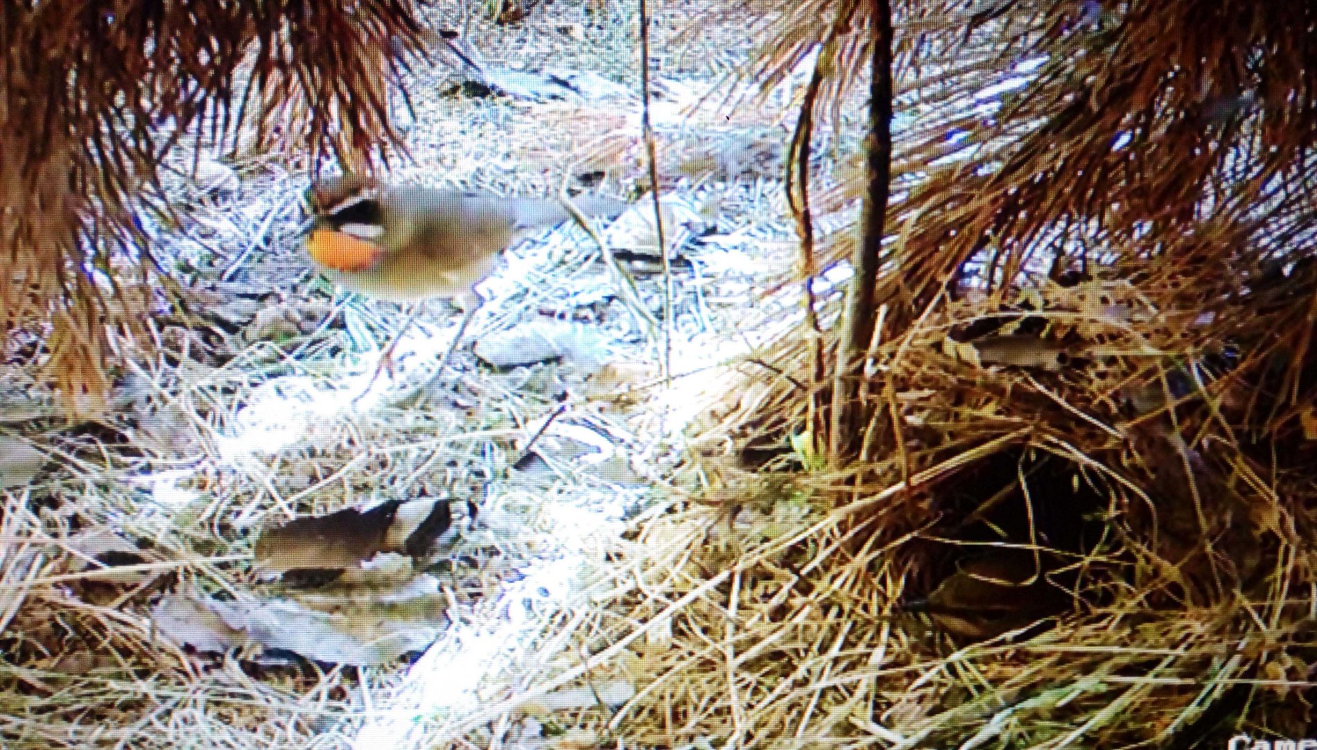 оологом пришли к выводу что скорей всего это таки яйцо красношейки. Повторный осмотри вольера развеял все сомнения, под веткой сосны обнаружил аккуратную луночку в земле. Хоть конфликтных ситуаций с другими видами птиц в вольере не было и в принципе птицы верхнего яруса и нижнего можно сказать даже не пересекались, я все же решил оставить красношеек в вольере одних. На сколько это было верным решением я затрудняюсь ответить. И настораживало меня отнюдь не беспокойство красношеек пока я буду вылавливать остальных птиц. Из своего опыта знаю что брачные "ухаживания" соловьев и спаривания очень бурные и в условиях ограниченного пространства могут закончится фатально. А точнее как правило так и заканчиваются. Поэтому присутствие стороннего раздражителя, на котором самец мог бы сгонять свою агрессию весьма действенный способ решения чрезмерной активности. Но важно чтобы в качестве раздражителя была птица в несколько раз превосходящая, иначе раздражитель долго не живет. Но это опять таки другая тема. Я же в свою очередь выловил всех, при этом поставив вольер с ног на ушы. Не так то просто выловить с вольера птиц у которых есть укрытия и которые идеально в нем маневрируют. Но не смотря на весь переполох соловьев это никак не смутило. Кажется даже наоборот. Уже через день над ямкой в земле был сооружен шалашик напоминающий гнездо. Тогда я принялся за еще более грубое вмешательство в их "личную" жизнь и установил над гнездом камеру. Очень жалею что камеру установил уже когда часть гнезда была готова. Интересно было бы пронаблюдать как самка строит гнездо с нуля. Но и так я получил огромное количество интереснейшего для себя видеоматериала, да и контролировал птиц с минимальным вмешательством. Оборудование настроено на запись по движению, то есть записывало только когда в кадре кто то появлялся. И естественно с ночным режимом и инфракрасной подсветкой.
