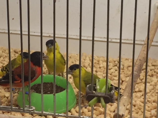 Созревшая молодёжь колумбийцев постоянно устраивала потасовки. Для урегулирования добавил к ним самца яррели и желтопузого и сразу воцарил мир. Мне показалось, что яррели у них в авторитете. Даже на кормушке стычек нет.