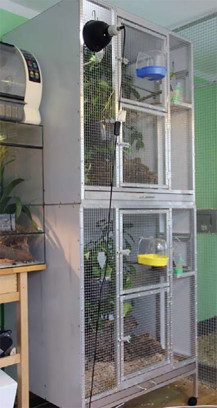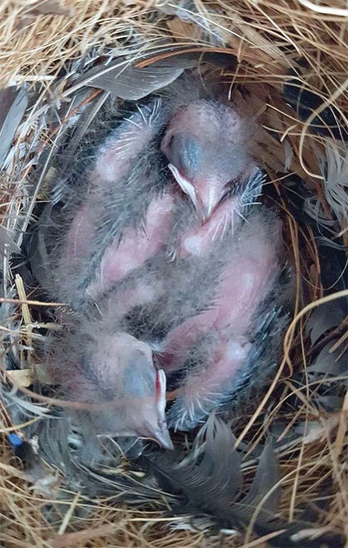 Из двух отложенных яиц птенцы вылупились через четырнадцать дней. Т.к. вольер был оборудован камерой, была возможность наблюдать за поведением птиц, не беспокоя их. Сразу, после вылупления был скорректирован корм - уменьшили его количество, но увеличили частоту кормления… специально под насекомых. Также, старались предлагать живой корм в разных частях вольера, чтобы родители птиц были заняты его поиском. Для этого в основном использовали микросверчков, которых периодически подбрасывали в вольер.