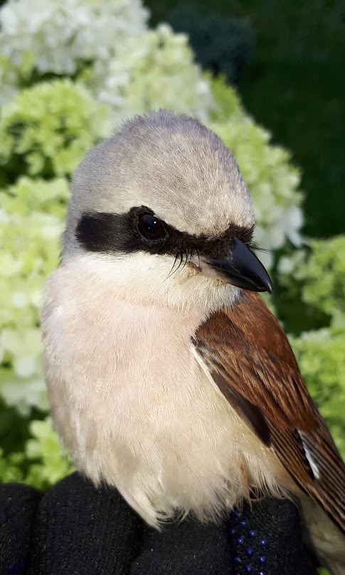 Не скажу, коллеги, что я знаток сорокопутов, поэтому сразу не мог определить что за вид. Он чем то похож на серого, но гораздо мельче и ярче. Бросается в глаза большая черная полоса на "морде". И брюшко у него телесного цвета.