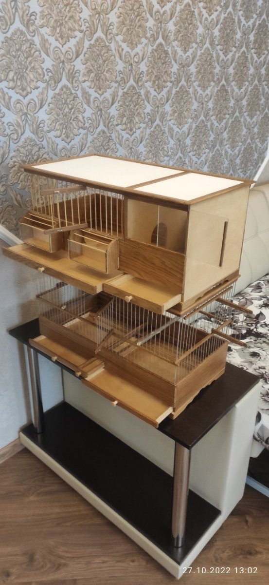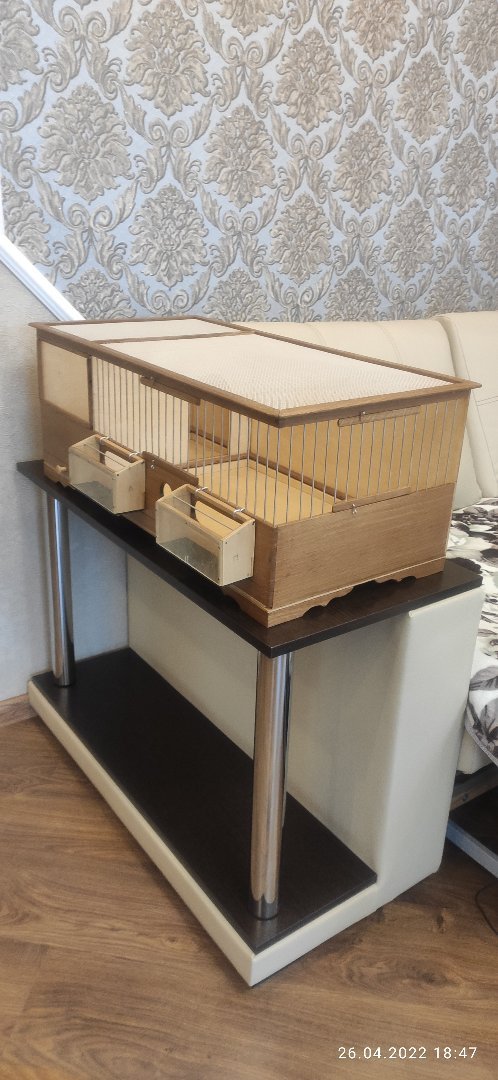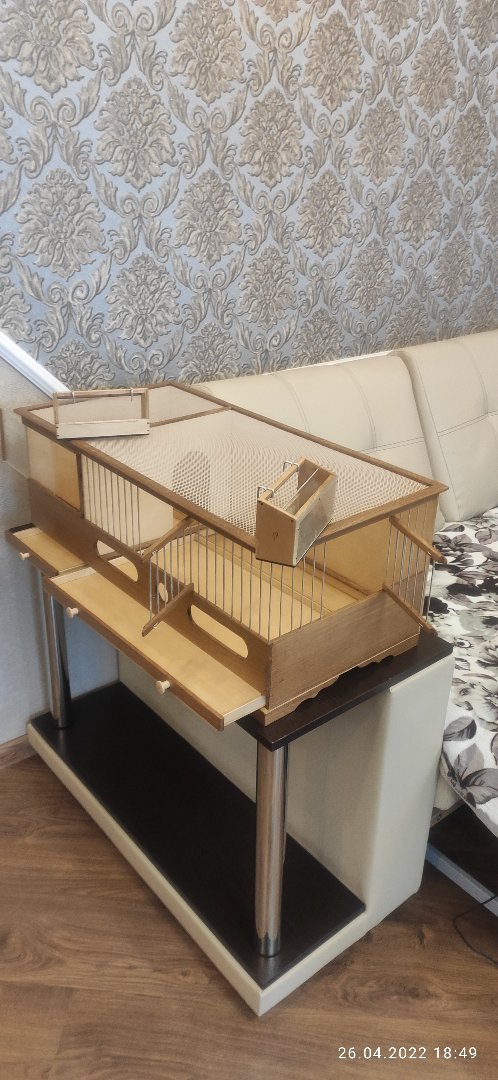 У меня такой вопрос. Клетка ящичного типа - почему крыша овальная?. Ящичную обычно берут для разведения. По идее нужно рассчитывать и на то, что сверху можно будет поставить ещё клетки. Полагаю, что это выбор хозяина заказа!? Если это только для одной, двух птиц, без разведения, то обзор очень маловат. Он практически не будет видеть птицу. Ещё, ранд у поддонов ваших клеток всегда прямоугольный, а треугольный вы не пробовали делать? У треугольного есть свои плюсы. Клетки конечно бесподобные, всё подогнано. Чувствуется рука мастера.