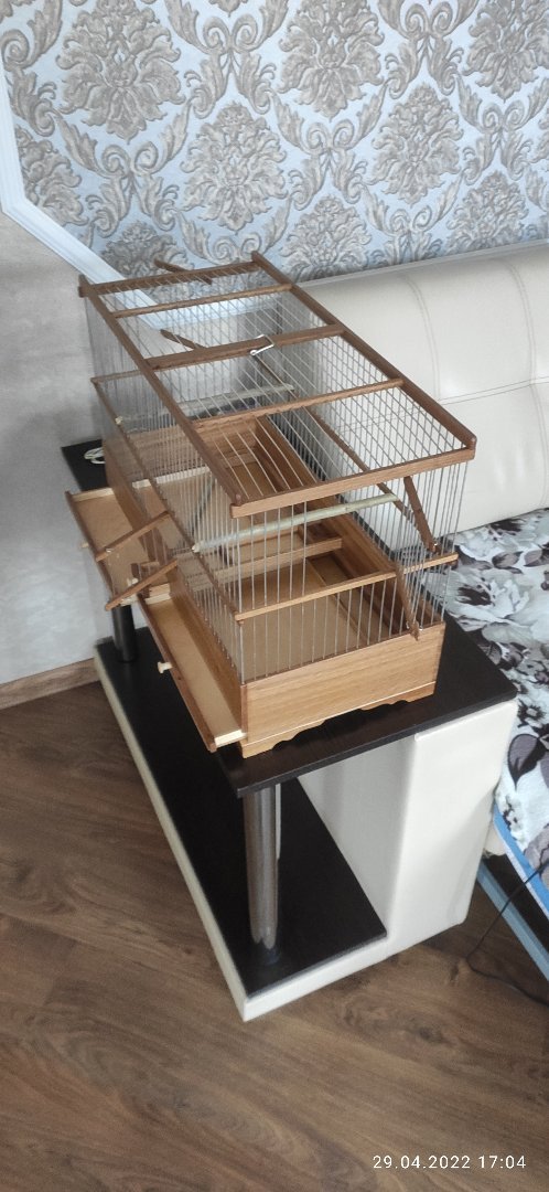 Добрый день коллеги по интересам!Собрал клетку одиночку под кенора в Мичуринск и решил выложить на обзор и обсуждение.Размер клетки 400×220×260мм.Дерево дуб,спицы пищевая дюраль диаметром 1,6мм.Клетка имеет три дверцы ,выдвижное дно и выдвижная кормушка по центру.Клетка пропитана Пинотексом и покрыты в два слоя лаком для яхт.До Мичуринска попробую отправить почтой России.Расстояние от Воронежа до Мичуринска не большое, поэтому выбор выпал на почту России.