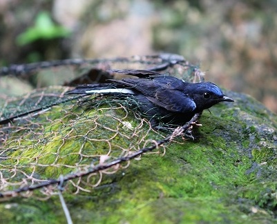 Любит посещать свежевырезанные просеки под паутины, но сеть видит хорошо и в зарослях ориентируется прекрасно. Так что ловили в основном лучками, устанавливая их на камнях по горным склонам.Птиц после поимки сразу связывали, обдерживали в небольших боксах с передними решётками из деревяных прутиков и птицы хорошо сохранили свою форму.