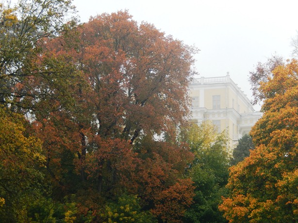 И этот бежевый цвет плаща,который носит Женщина-Осень,сидящая на скамейке своего парка,с немыслимым переплетением огненных волос и кленовых листьев..