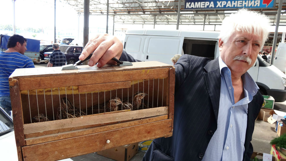 Сегодня 5 апреля 2015 года, на территории Восточно - Кругликовского рынка г. Краснодара проходила ярмарка певчих птиц. Что было видимо или сидело в закрытых клетках, ожидая спроса. Черноголовая славка, восточный соловей, соловей красношейка, чёрный жаворонок, степные жаворонки, полевые жаворонки, зарянки, лесные завирушки, чёрные дрозды, синицы московки, Овсянки ремеза, седоголовая овсянка, горные овсянки, обыкновенные овсянки, дикие перепела ( 5 шт.). Северная птица: снегири, чечётки, урагусы, щеглы маеры, седоголовые щеглы, щуры. Кавказские снегири, красношапочные вьюрки, клесты еловики, репела, чижи, зяблики, зеленушки, щеглы. Пожалуй перечислил всех диких птиц. Погода стояла в меру солнечная и тёплая, встретил много друзей,знакомых и товарищей по страсти.