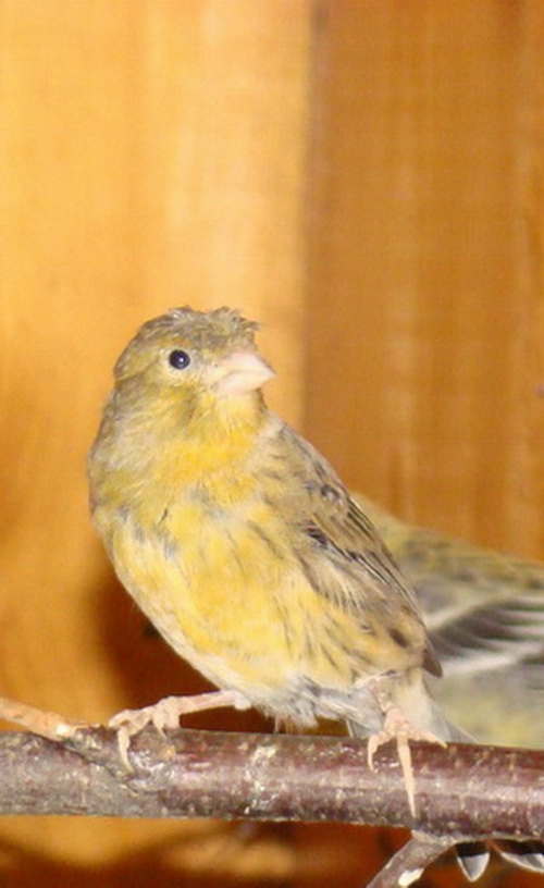 Раньше не давали информацию - боялись сглазить :) . У нашего друга, который увлекается гибридизацией (он разводил гибридов канарейки с щеглом, чижом и реплом) в этом году родилась маленькая сенсация. В вольере где находились щур, зяблик, два гибрида самца канарейки с реплом прошлого года разведения, две гибридные самки с реплом прошлого года разведения и два гибрида - самца с щеглом пятилетний (предполагаемый отец) и трехлетний, самки гибридов сами построили гнезда и отложили яйца. Самцами выступали гибриды со щеглом. Так как по всем канонам никто не должен был вылупится за гнездами и не приглядывали (чем бы дите не тешилось....). Понадобился самец гибрида с реплом и при его отлове в гнезде обнаружился оперившийся птенец. Самку в этом гнезде подкармливал так же щур, так что с определением отцовства пока проблема, тем более что у птенца заметная "щуриная" полоса на крыле. Птенец вылетел, начинает есть сам, хотя самка его пока кормит. Второго гнезда пока не строит и отца не выдает :) .