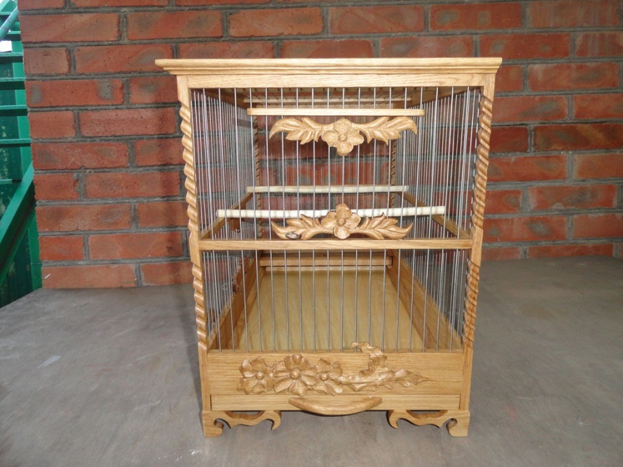 Приветствую всех форумчан. Вот сделал зимними короткими денёчками. Клетка для щегла. Дуб, нержавейка, масло с воском.