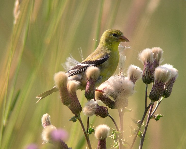 Золотой или американский чиж (Spinus tristis) - длина тела: 11,5-14 см, размах крыльев: 19-22 см, вес: 11-16 грамм. Птицы данного вида единственные во всем подсемействе Carduelinae, которые полностью меняют летнее оперение на зимнее. Половой диморфизм заключается в окраске оперения - самцы летом в основном ясно жёлтые, зимой - оливковые, а самки бледно жёлто-коричневые, только летом светлее.