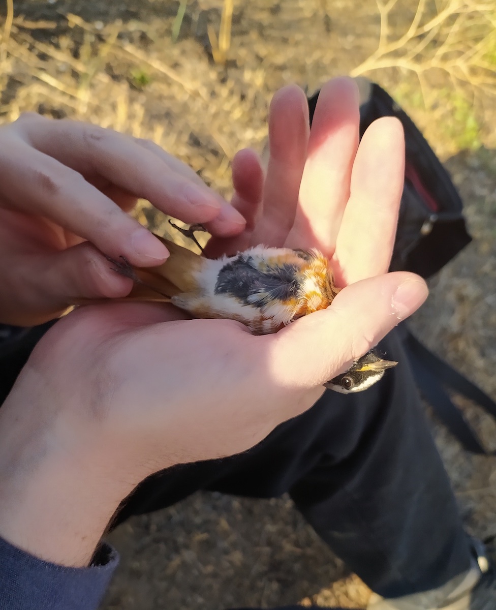 Добрый день! Ловить пытаюсь на участке. Включаю только запись реполова. Реполовы не много, но есть, стайка собирается до 15-20 штук. Стайка не реагирует, одиночные и пары подлетают, но в сеть не идут. Навалило больших синиц, мешают. Полетели овсянки, влетело две, одна довольно яркая, но не нужна. Пока их выпутывал пеночка загнала в сеть еще одну овсянку и сама влетела, да так, что пришлось вырезать (мелкая, как челнок прошла несколько слоев). Зеленушки в этом сезоне тоже яркие, даже молодые. Снегири шарятся по участкам, почему то рано ушли из леса. Чечетки летят стайками 20-30 штук. В пригородном лесу многоголосие - различные синицы, пеночки, много еловиков, а белокрылых нет.