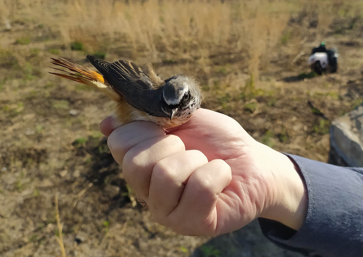 Сегодня вышел в поле. Три ОС параллельно, запись полевого и лапландца. Погода отличная - пасмурно, ветра почти нет. Подлетела 4 (предположительно лапландцы, т.к. голоса не слышал, но они явно заинтересовались музыкой) покрутились и отлетели, больше лапландцев не было и не слышно. Пара жаворонков села у сети, один зашел в нижний карман. Пошел вынимать, влетел второй, но вывалился. От сетей поднялось еще 5 штук, видимо подошли пешком. Жаворонок по-моему самец, мне нужен один, переключил все 5 телефонов на подорожника, но их так и не пролетало. Зато начали бесчинствовать рябинники. Стадо стало носится по полю, влетело 5 штук, сеть попортили. Пришлось прекратить ловлю (только отходишь от сети они опять налетают).