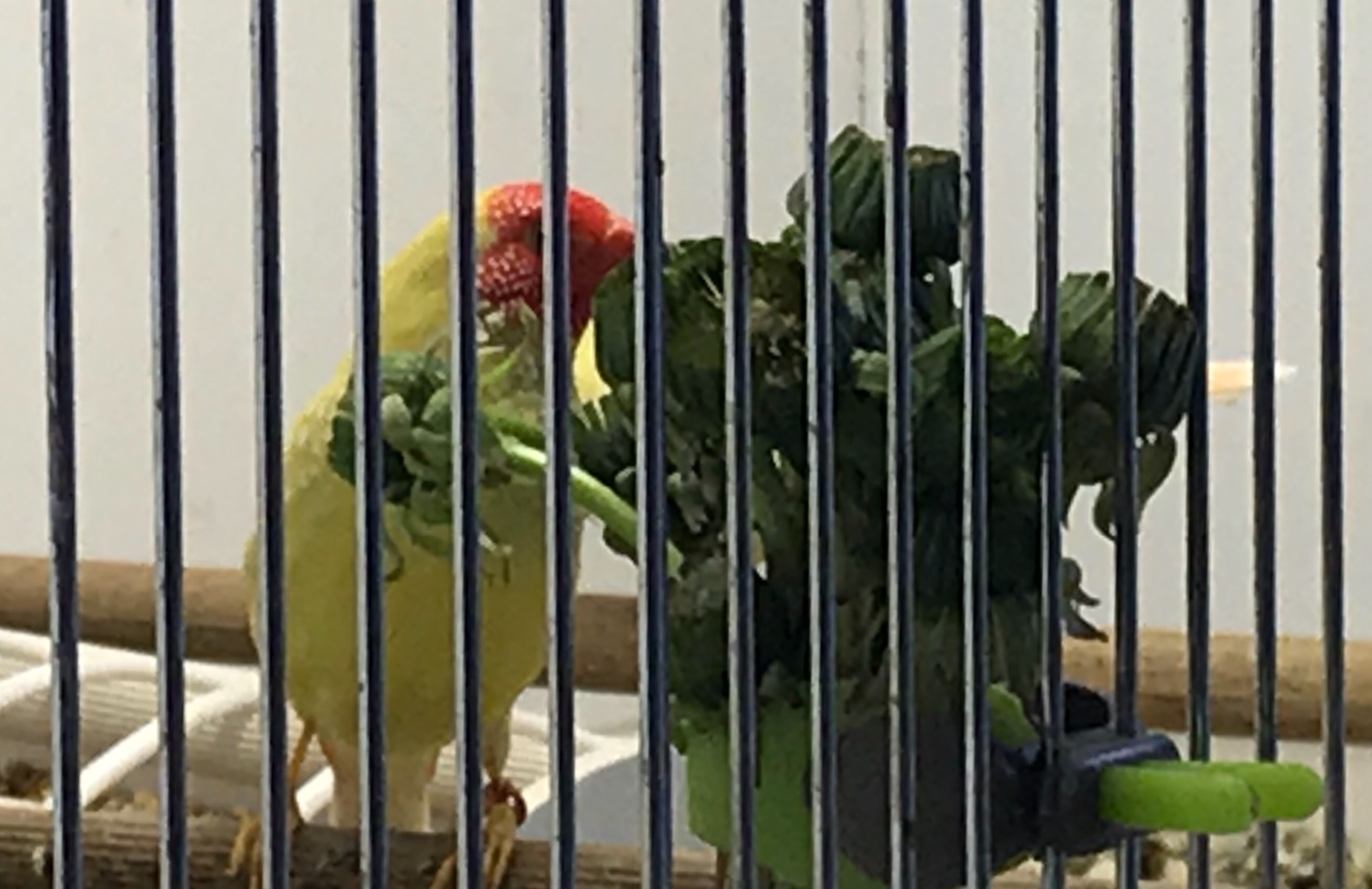 Как мною написано в теме Мозамбикские вьюрки все мои Птицы обожают одуванчик когда даёшь его с ножкой на прищепке. Заранее прошу прощения за качество фото.