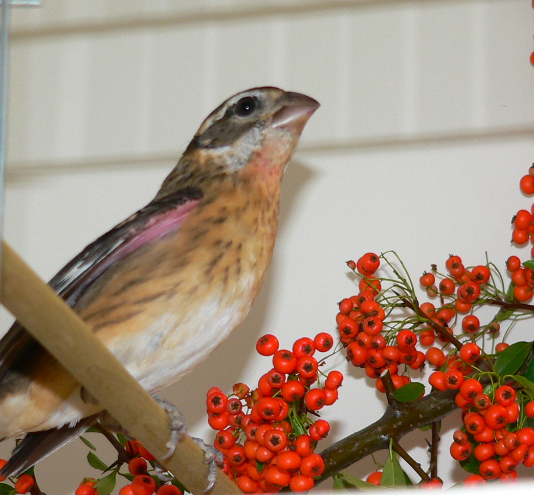 Дал птице 2 кормушки с кардиналовым кормом и кормом для дубоносов. Фотографии постараюсь выложить попозже.